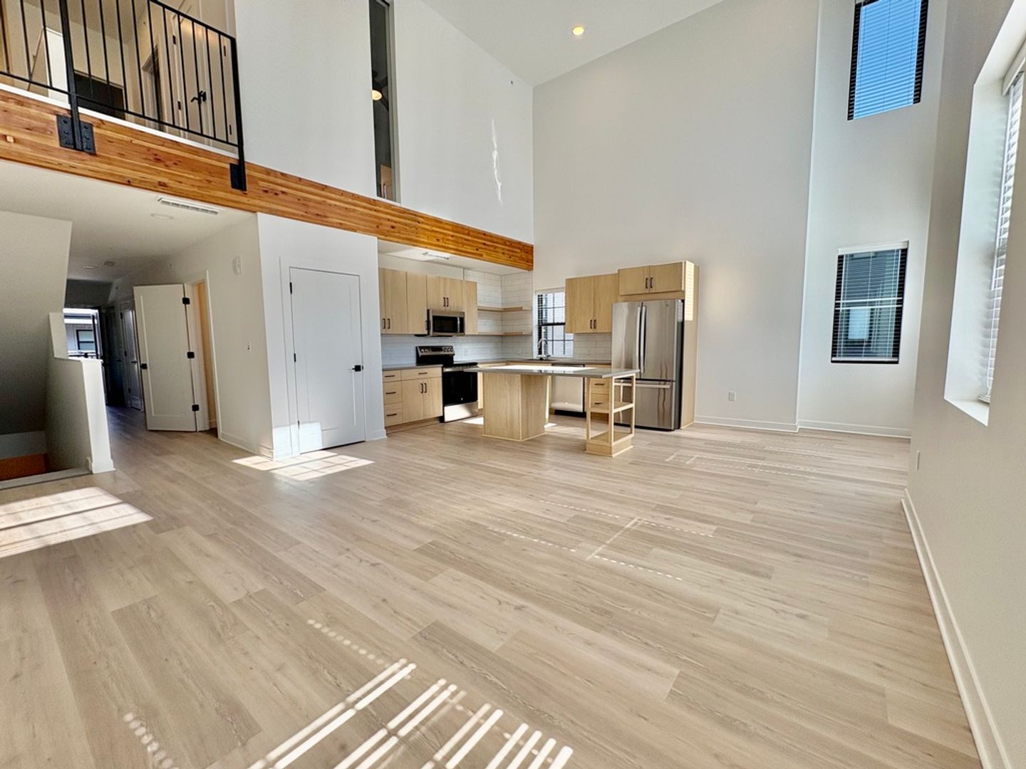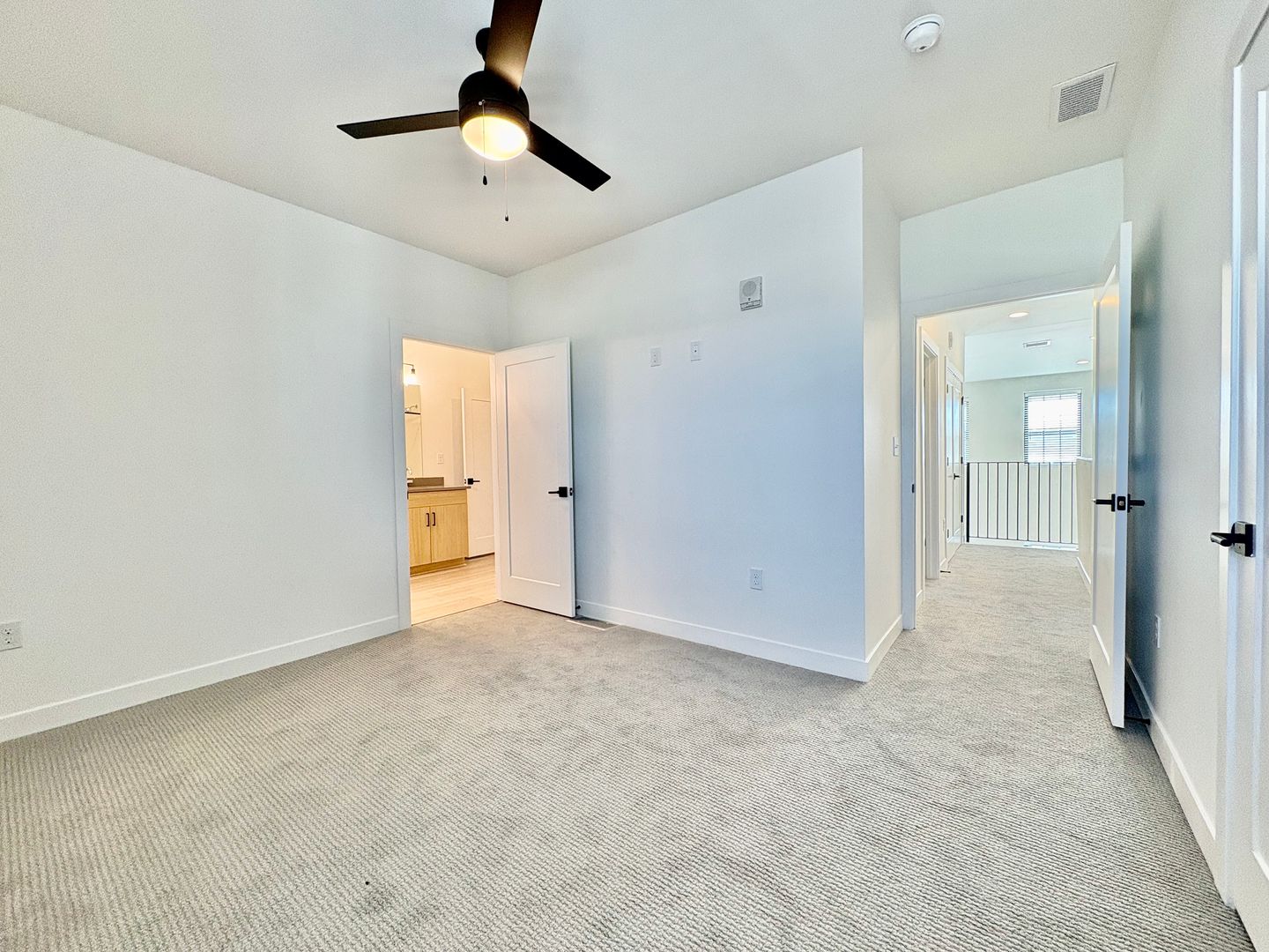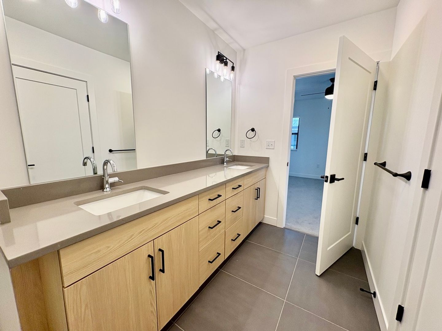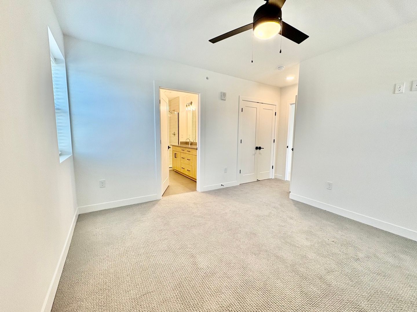 This spacious home offers an open-concept living, dining, and kitchen area filled with beautiful natural light. The main level features the primary bedroom suite, in-unit washer and dryer, and access to a huge private balcony, perfect for relaxing or entertaining. Upstairs, you’ll find two additional bedrooms, ample closet space, and thoughtfully designed bathrooms, all featuring double vanity sinks for added convenience and luxury. Additional amenities include a two-car attached garage, modern finishes throughout, and exceptional storage space.
