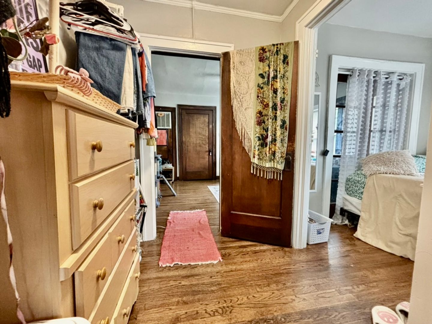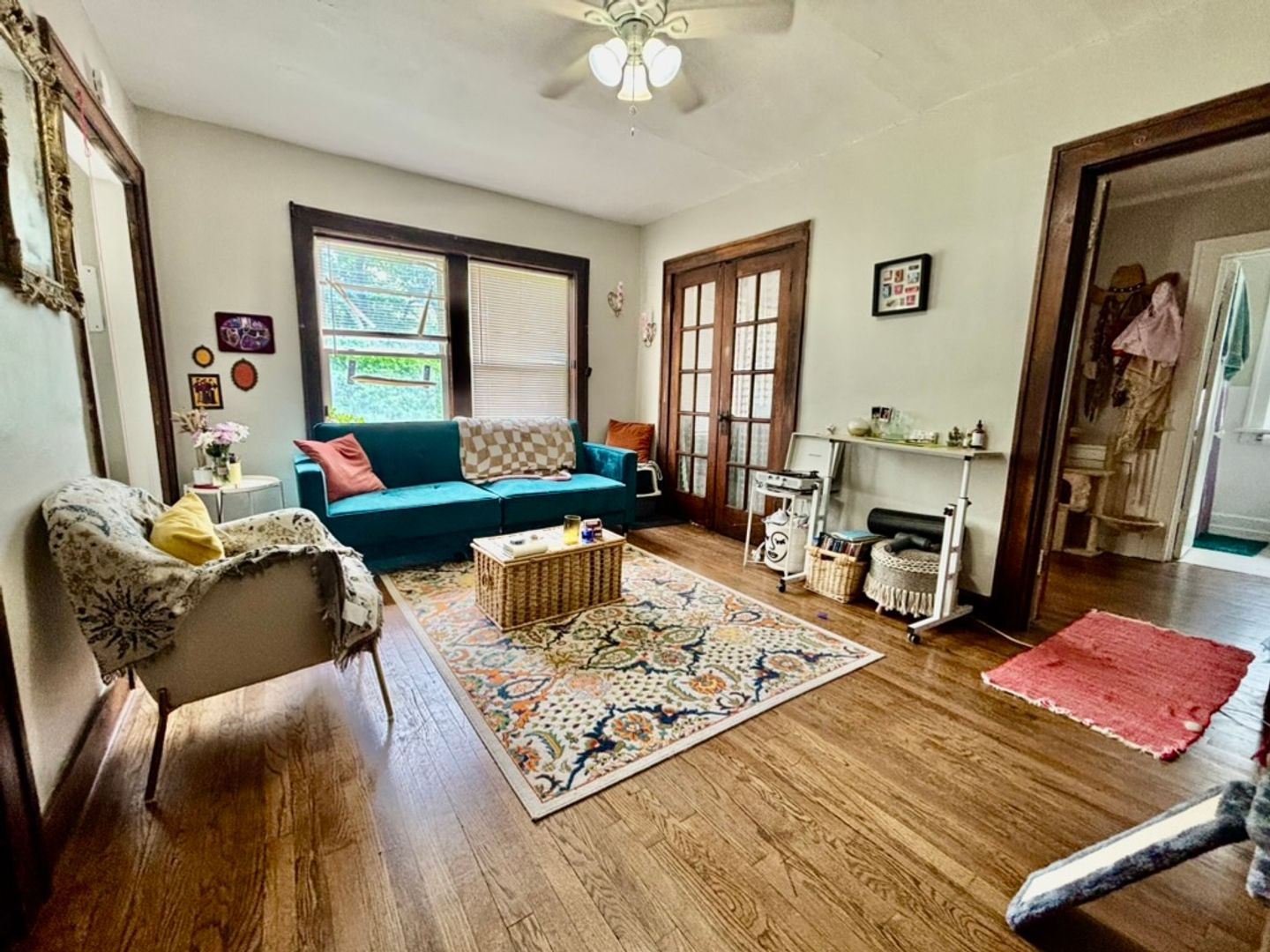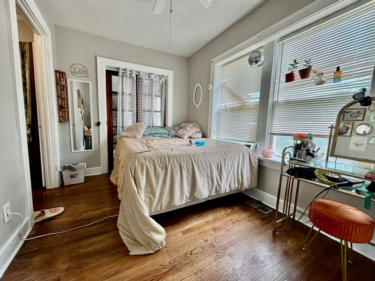 A versatile bonus room, perfect as a walk-in closet or home office, leads to the bathroom. The unit is equipped with newer windows letting in plenty of natural lighting, central air, and heating for year-round comfort. Enjoy the convenience of shared off-street parking, and stay connected with Google Fiber-ready wiring.