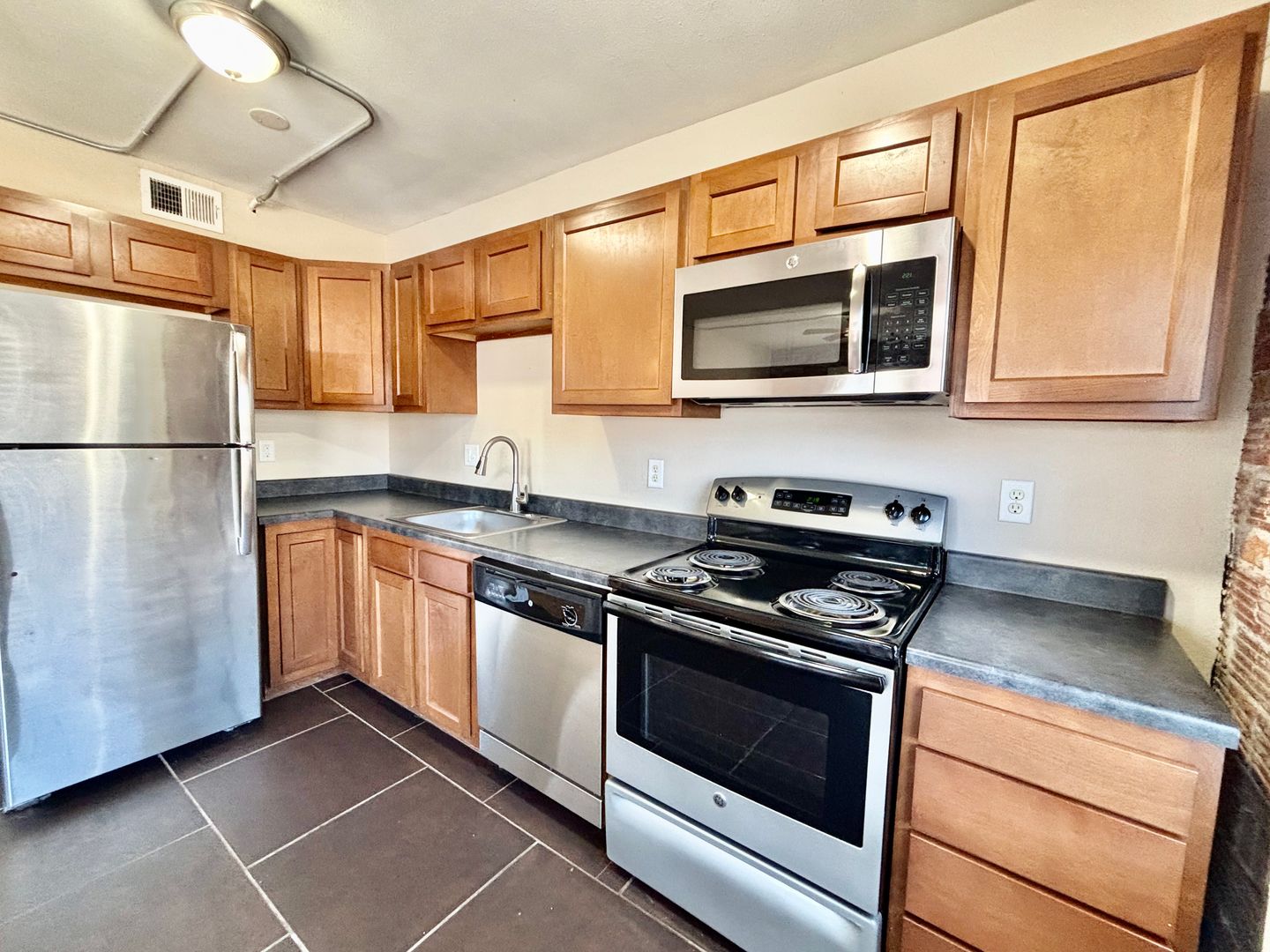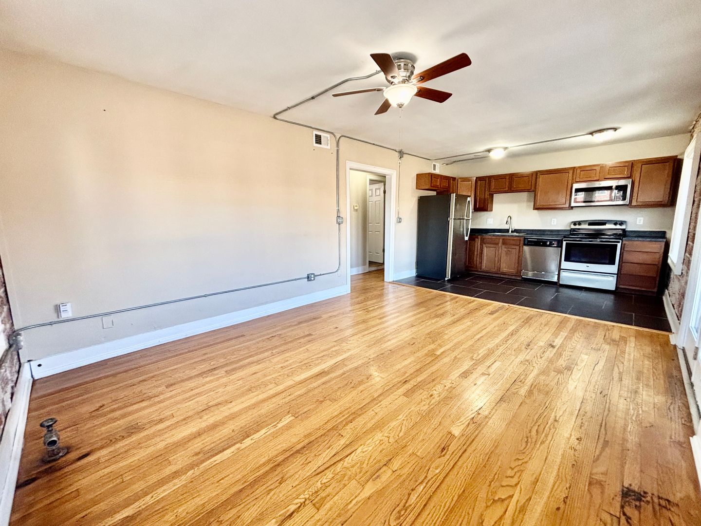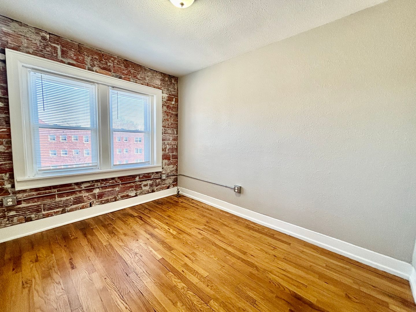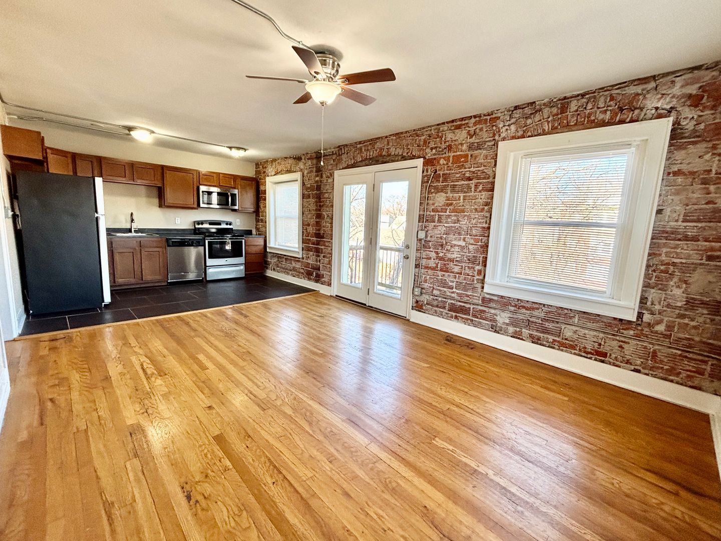 Step into charm and comfort in this adorable 1-bedroom apartment featuring beautiful original exposed brick, an open-concept living/dining/kitchen layout, and updated stainless steel appliances. Natural light fills the space, highlighting the warm hardwood floors and inviting atmosphere.
