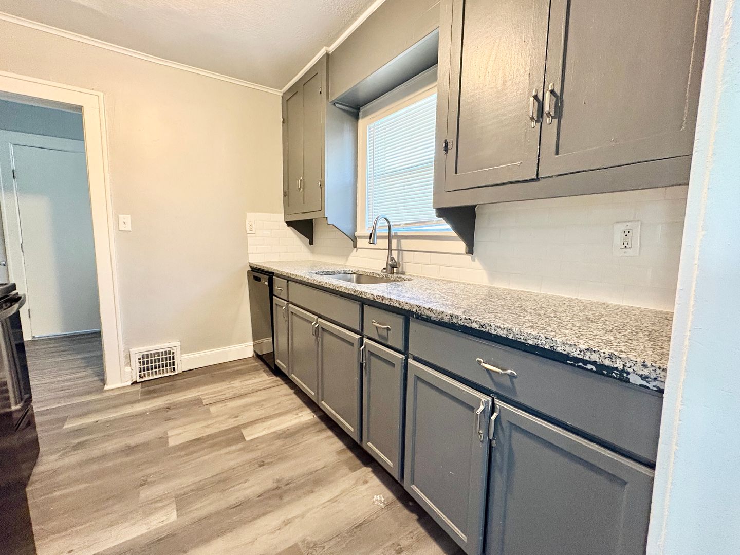 Welcome home to this beautiful 2-bedroom house with an upstairs den that blends modern finishes with functional charm. Enjoy a no-carpet layout throughout, featuring durable flooring and a bright, clean aesthetic. The updated kitchen shines with light granite countertops. Upstairs in the den is full of natural light. Downstairs, you’ll find a spacious basement providing excellent storage or flexible bonus space. Additional highlights include off-street parking in the back through a shared driveway with a rear entrance. Washer and dryer hookups are available!