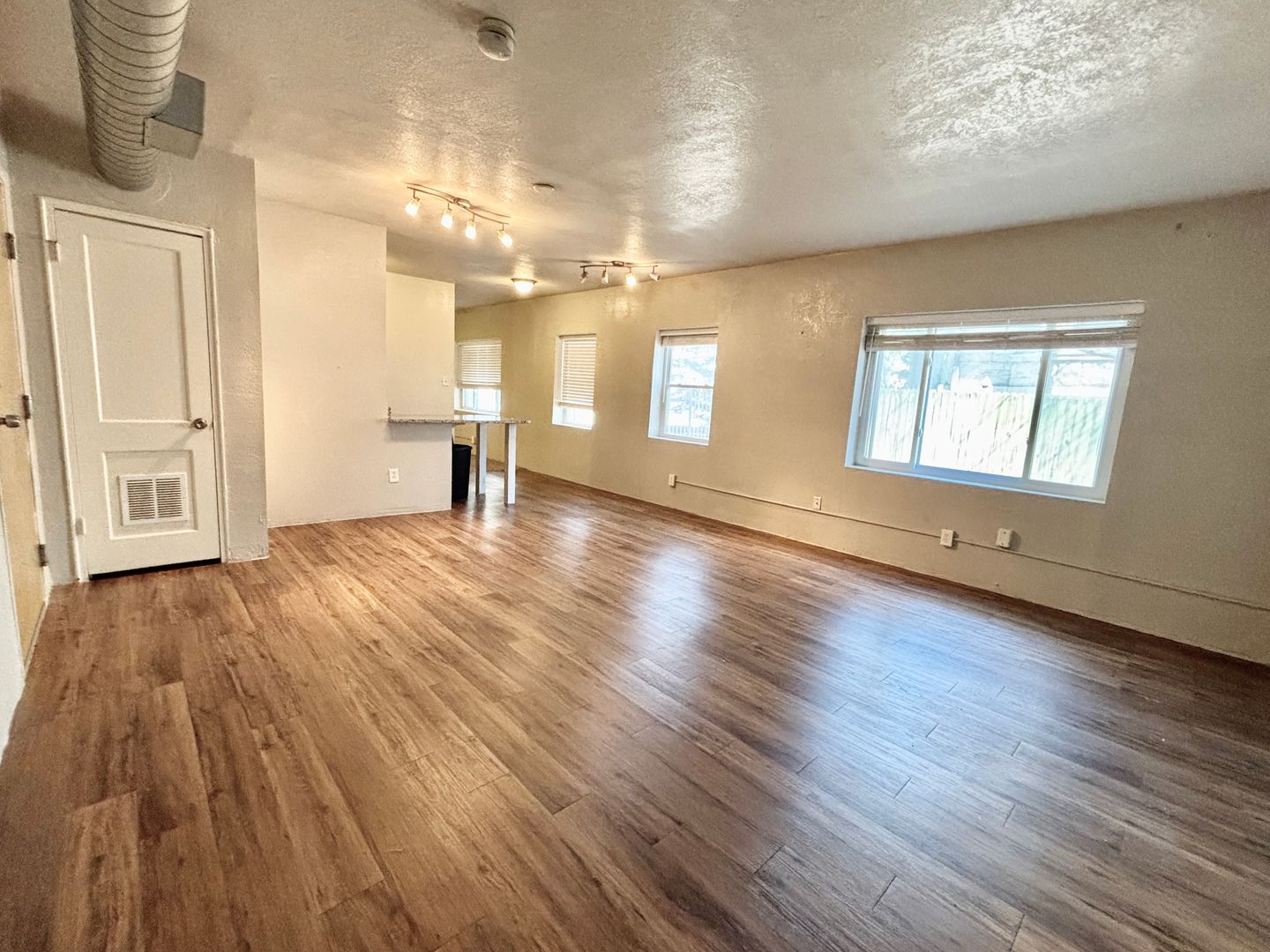 The open living and dining areas are bathed in natural light from oversized windows, creating a warm and inviting atmosphere throughout the day. The layout provides ample room for entertaining, working from home, or simply enjoying your space in style.