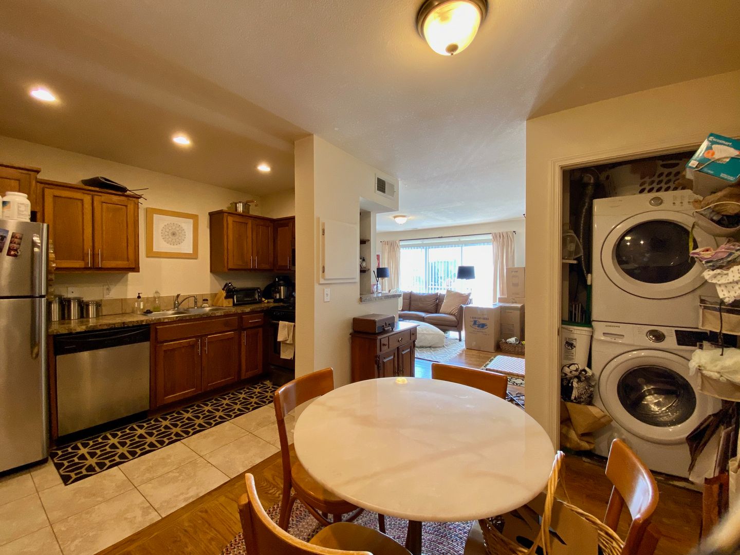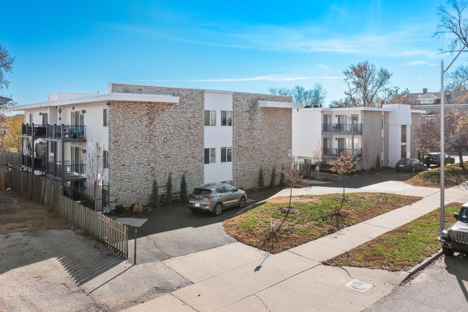This unique two bedroom unit features a spacious balcony off both the living room and primary bedroom, plus in-unit laundry for added convenience. Enjoy stainless steel appliances throughout the kitchen, including a gas stove, fridge, dishwasher, and microwave. Step outside to a large shared outdoor area with patio seating and gas grills—perfect for entertaining. The building offers gated access with a punch-code entry system. Tenants receive access to security cameras at move-in, providing peace of mind and a reliable resource should anything come up. One reserved off-street parking spot is included free of charge. All just minutes from everything Kansas City has to offer!