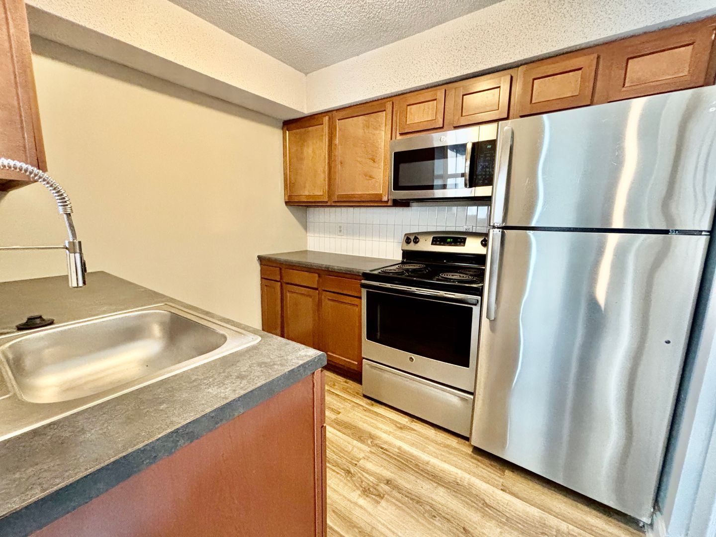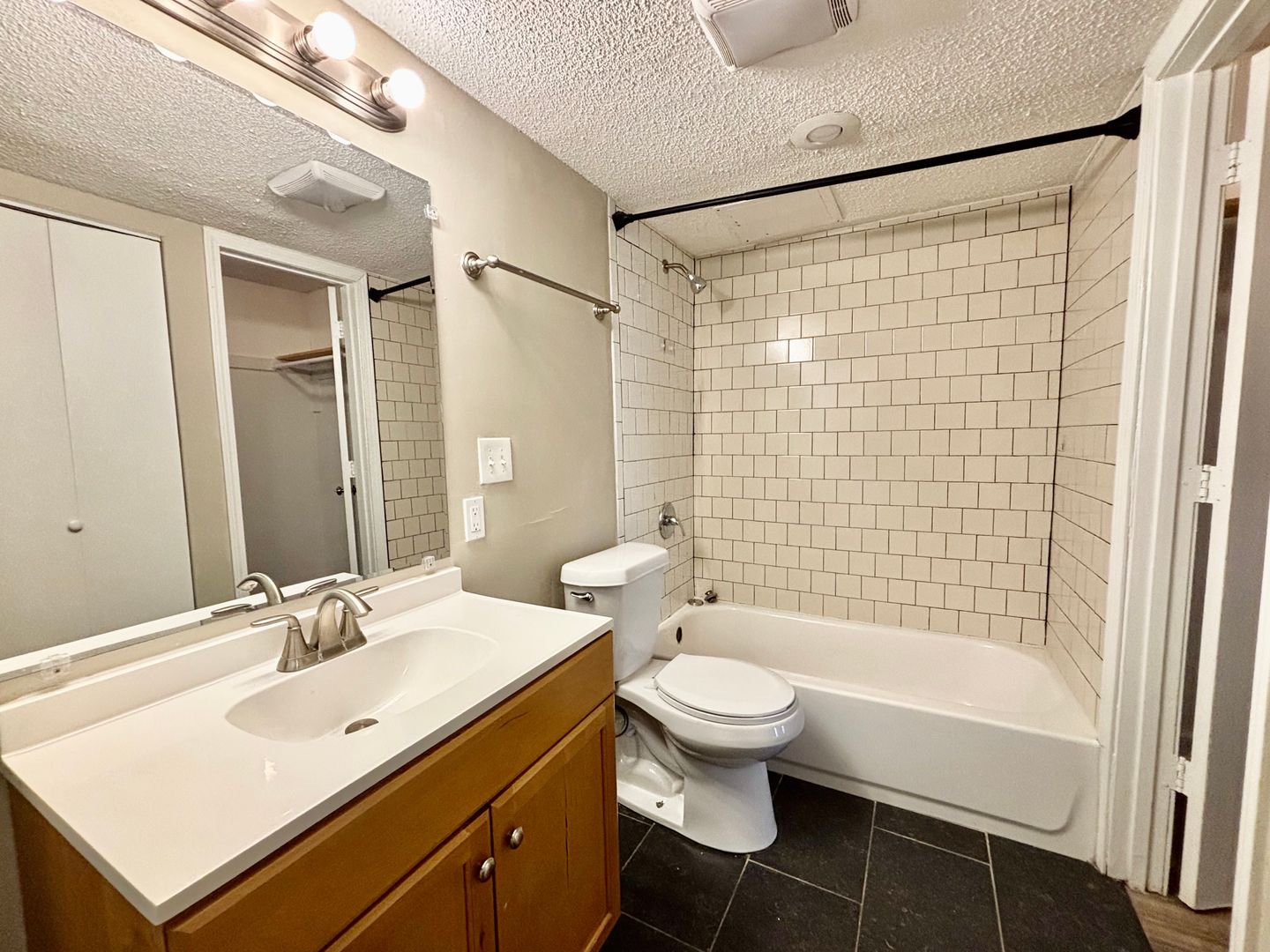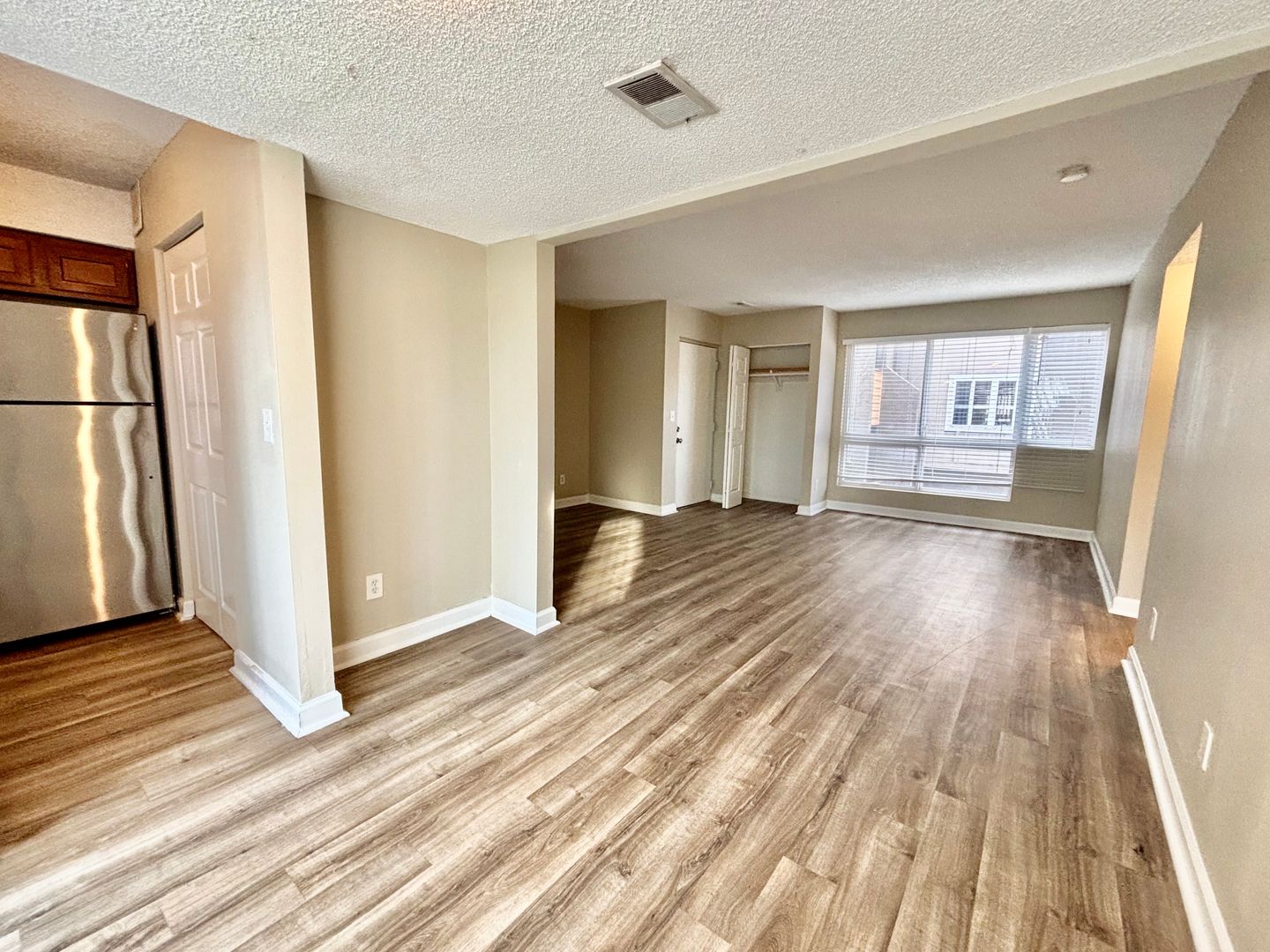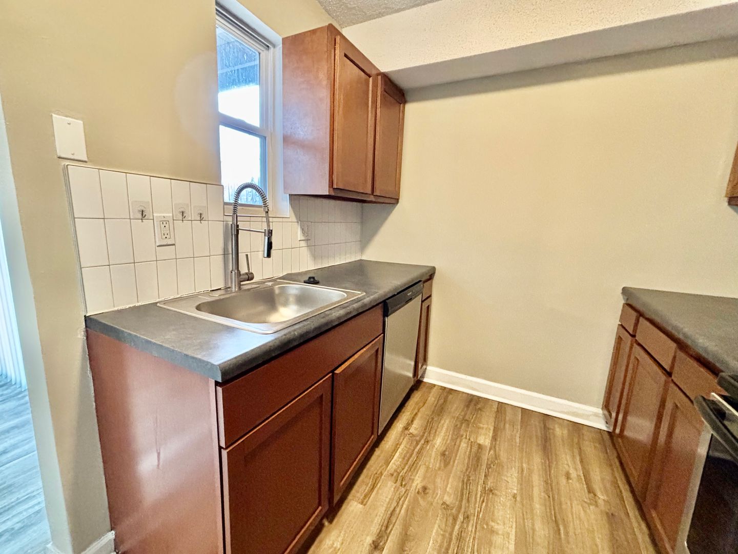 The kitchen features sleek stainless steel appliances and ample room for everyday cooking. You’ll also love the convenience of an in-unit washer and dryer and a spacious walk-in closet with dual access from the bedroom and bathroom. Located near the parking lot for easy access, this apartment blends practical features with modern living in a layout that truly works for you.