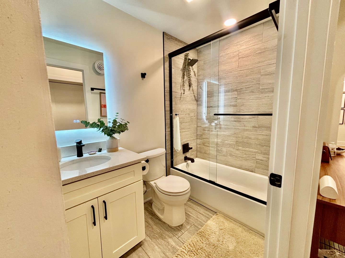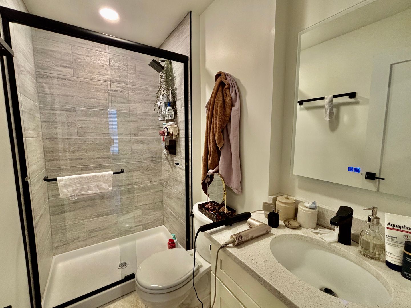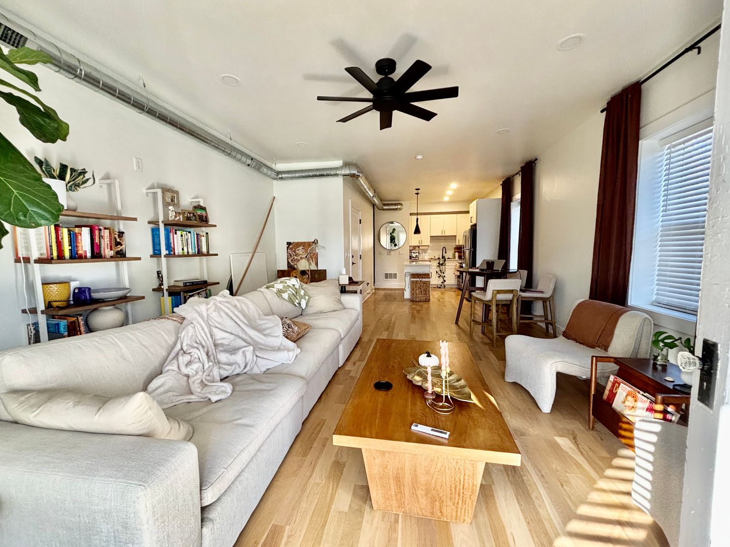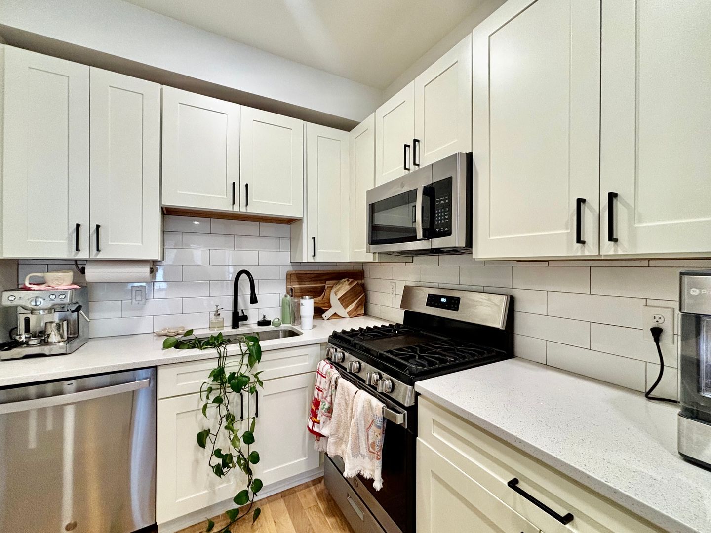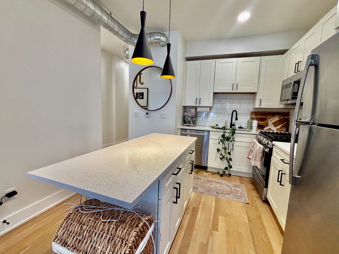 Welcome home to this stunningly renovated top floor 2-bedroom, 2-bath apartment offering the perfect blend of modern comfort and convenience. Step inside to find a spacious, open-concept living area that flows seamlessly into a sleek kitchen featuring an island, perfect for cooking, entertaining, or enjoying your morning coffee. The bright and airy living room opens up to a generous private balcony, giving you the perfect spot to relax or unwind after a long day. Both bathrooms are thoughtfully updated with premium finishes and ultra-bright vanity lighting, ideal for getting ready in style.